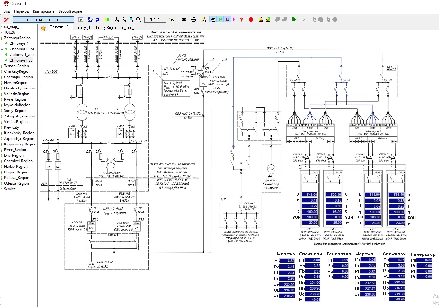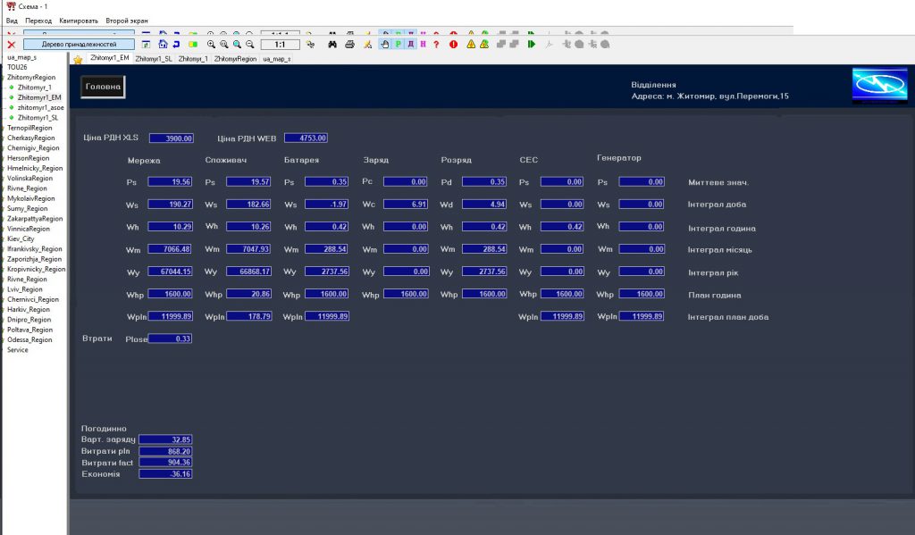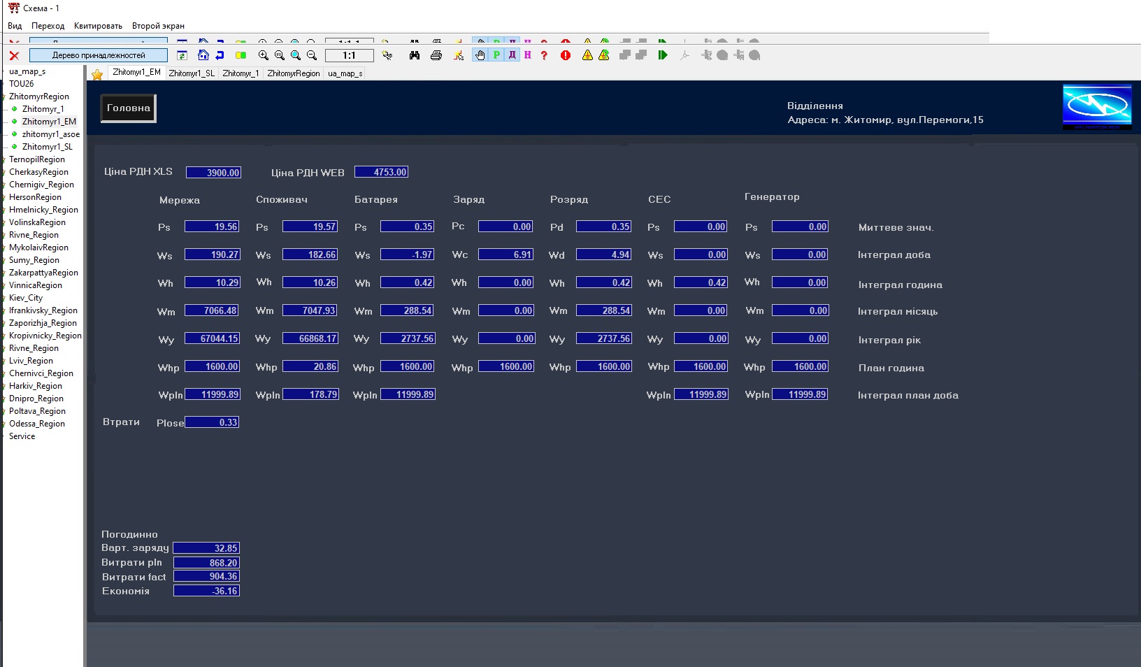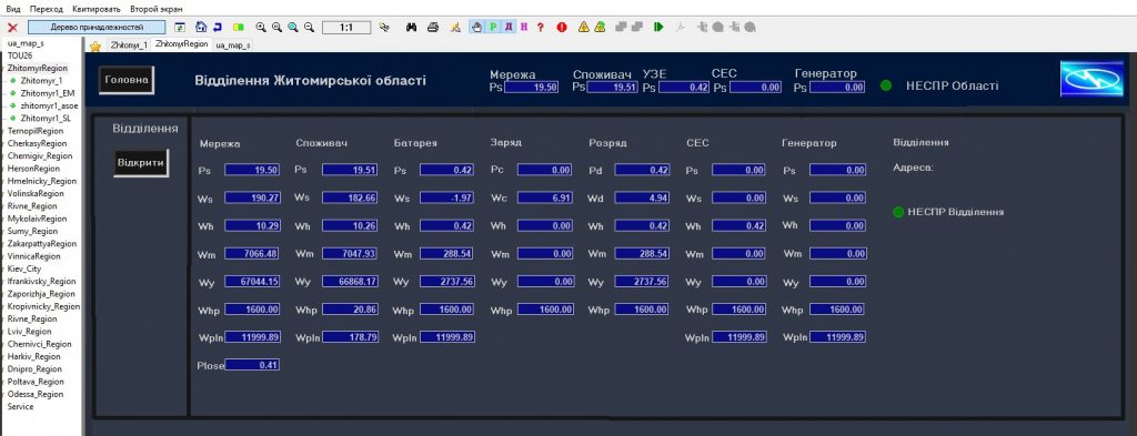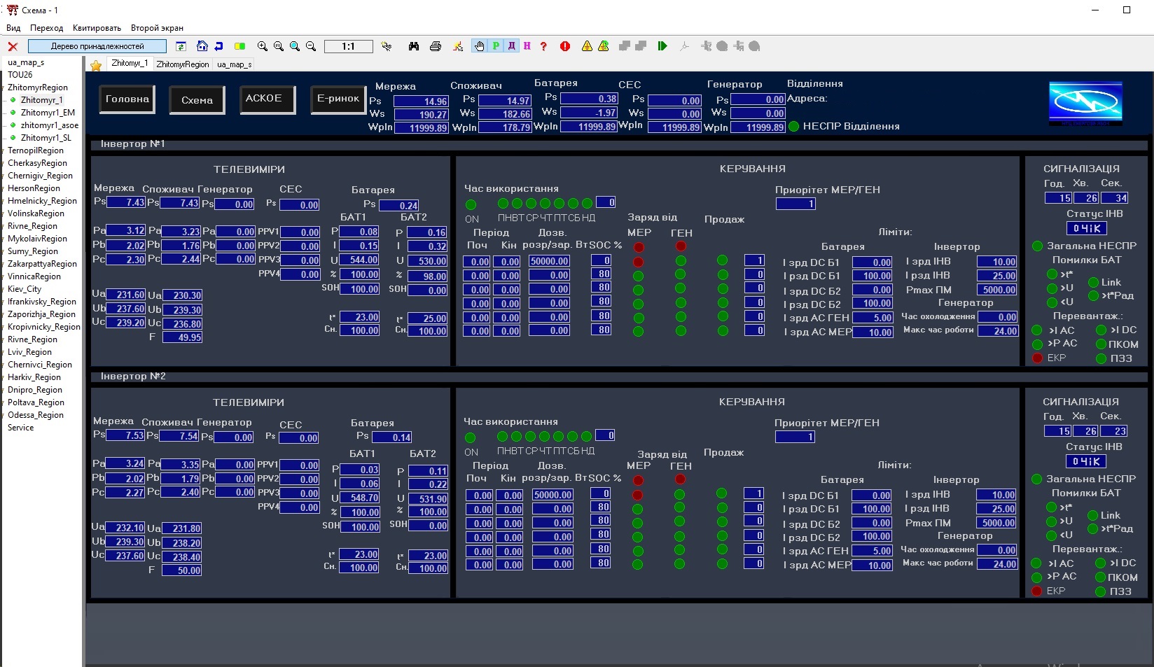 Комплекс призначений для диспетчерського керування об’єктами накопичення енергії в нормальному та аварійному режимі, організаційного та технологічного обслуговування, для зв’язку з вищими рівнями ієрархії в системі накопичення енергії, а також для обробки, документування та архівування параметрів режиму та даних технологічного процесу. Комплекс дозволяє здійснювати дистанційне керування інверторами (типу Deye) та всією обслуговуваною електричною мережею.