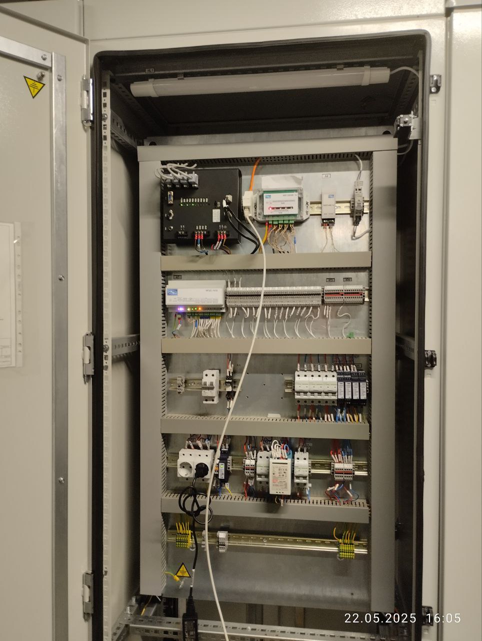 Металева шафа конструктивного виконання IP54 з електронними модулями, що змонтовані на DIN-рейках. Температурний режим експлуатації мінус 20 до 50°С. До складу модулів, у різних кількостях та співвідношеннях, можуть входити: