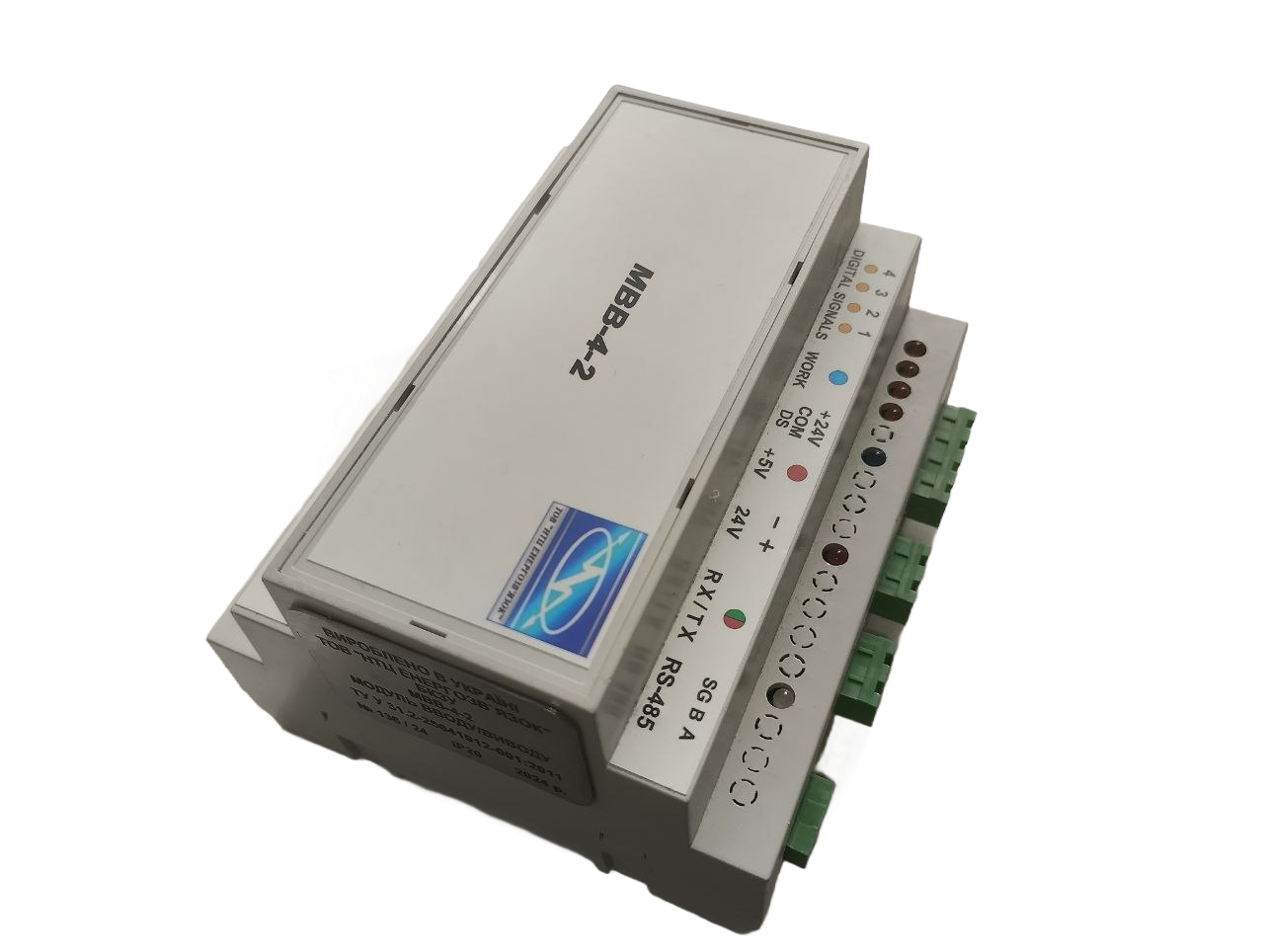 МВВ забезпечує обмін даними з зовнішніми пристроями по каналу зв’язку з фізичним інтерфейсом RS-485 в стандартному діапазоні швидкостей від 2,4 до 57,6 Кбод по протоколу Modbus (RTU), режим «slave».