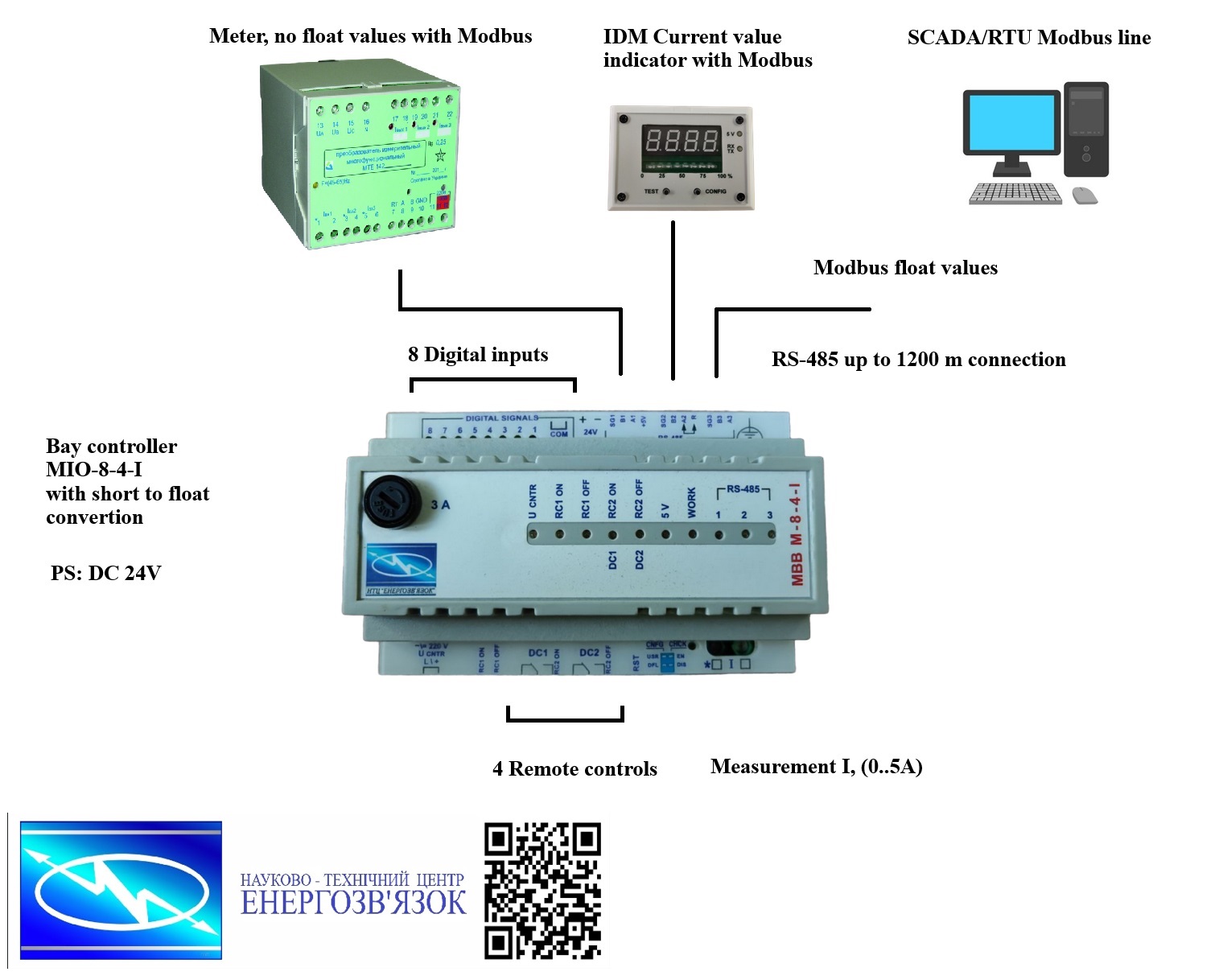 control commands (4 power switches), measurement of alternating current by one phase (0…1 or 0…5 A).