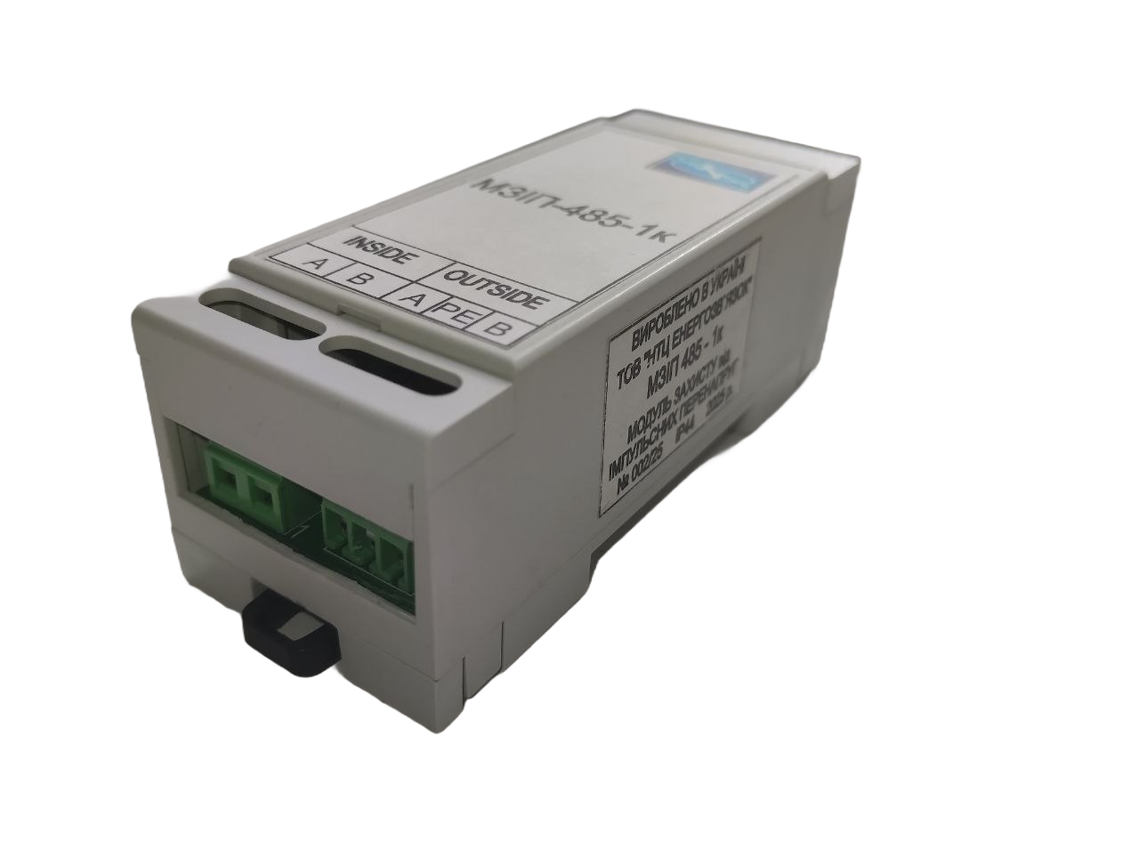 1.1 The impulse surge protection module MZIP RS485-1k (hereinafter MZIP) is designed to protect physical RS485 interfaces of end equipment included in the information highway from damage by high-voltage voltage pulses. They occur in physical communication lines under the influence of lightning discharges and when switching large current values by high-voltage switches at power facilities.