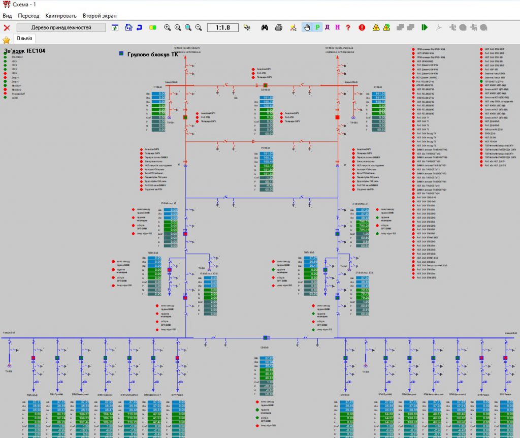 — reception of telemetric and other operational information according to standard data transfer protocols IEC 870-5-101, IEC 870-5-104, Modbus (RTU, ASCII, TCP/IP), ICCP (OPC server), which allows receiving data from various telemechanics devices and other software complexes;